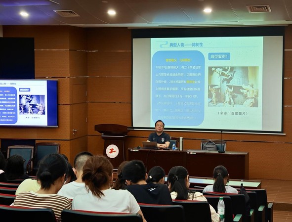 观展结束后,同学们带着激动的心情,聆听了马克思主义学院姜超老师主讲的《伟大抗战精神典范 —— 八百壮士坚守四行仓库》专题讲座。讲座是对展览内容的延伸与深化。姜超老师围绕“八百壮士何以在敌我实力悬殊下鏖战多日并全身而退”展开,剖析出“将士抱必死信念抵抗、市民全力支援”的胜利根源,阐释四行仓库保卫战所彰显的军民团结御侮的伟大抗战精神,将展览中的红色基因与抗战历史深度联结。